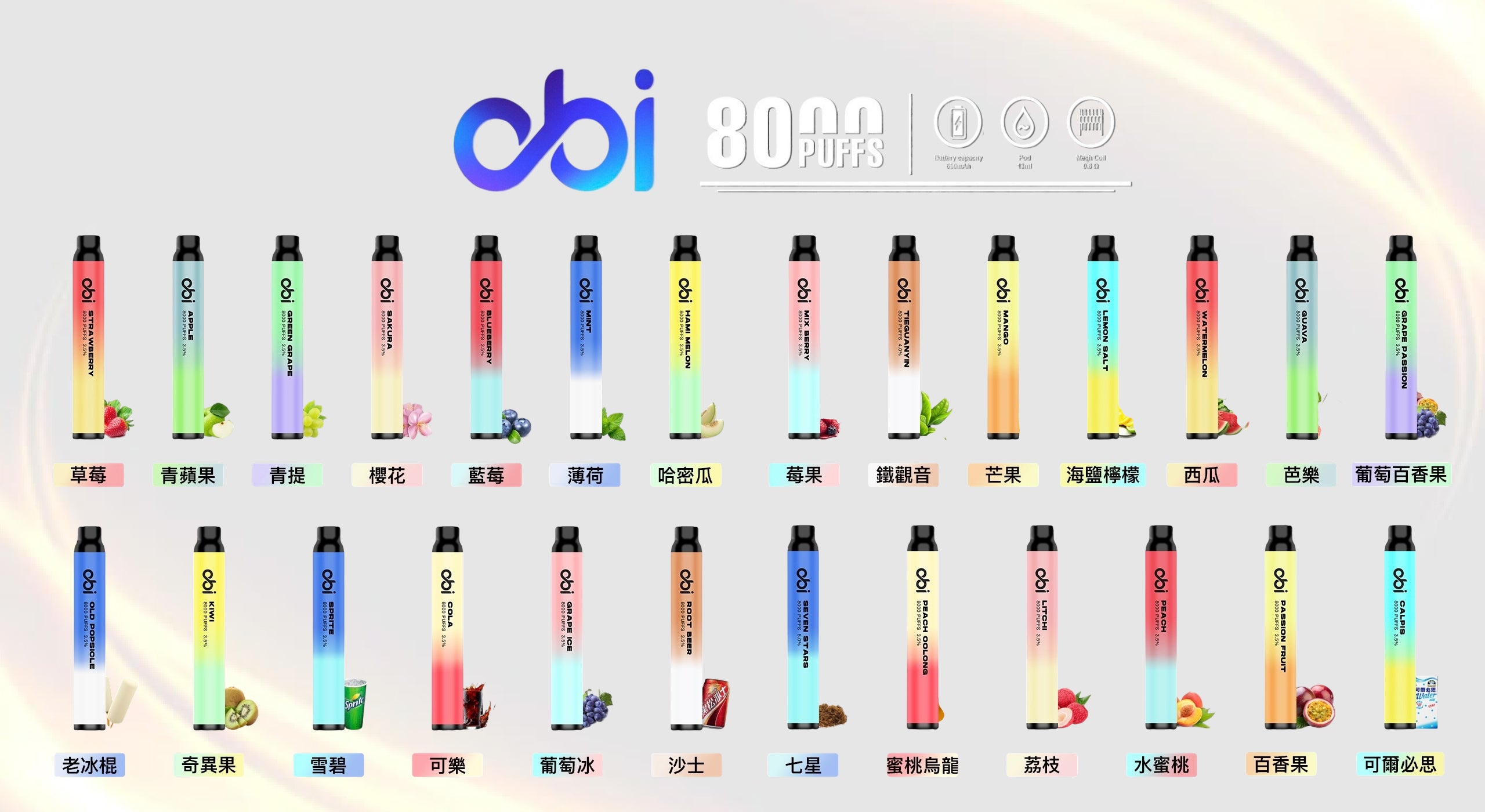4️⃣ 香料(Flavoring) – 提供各種口味,如水果、甜點、飲品、薄荷等。